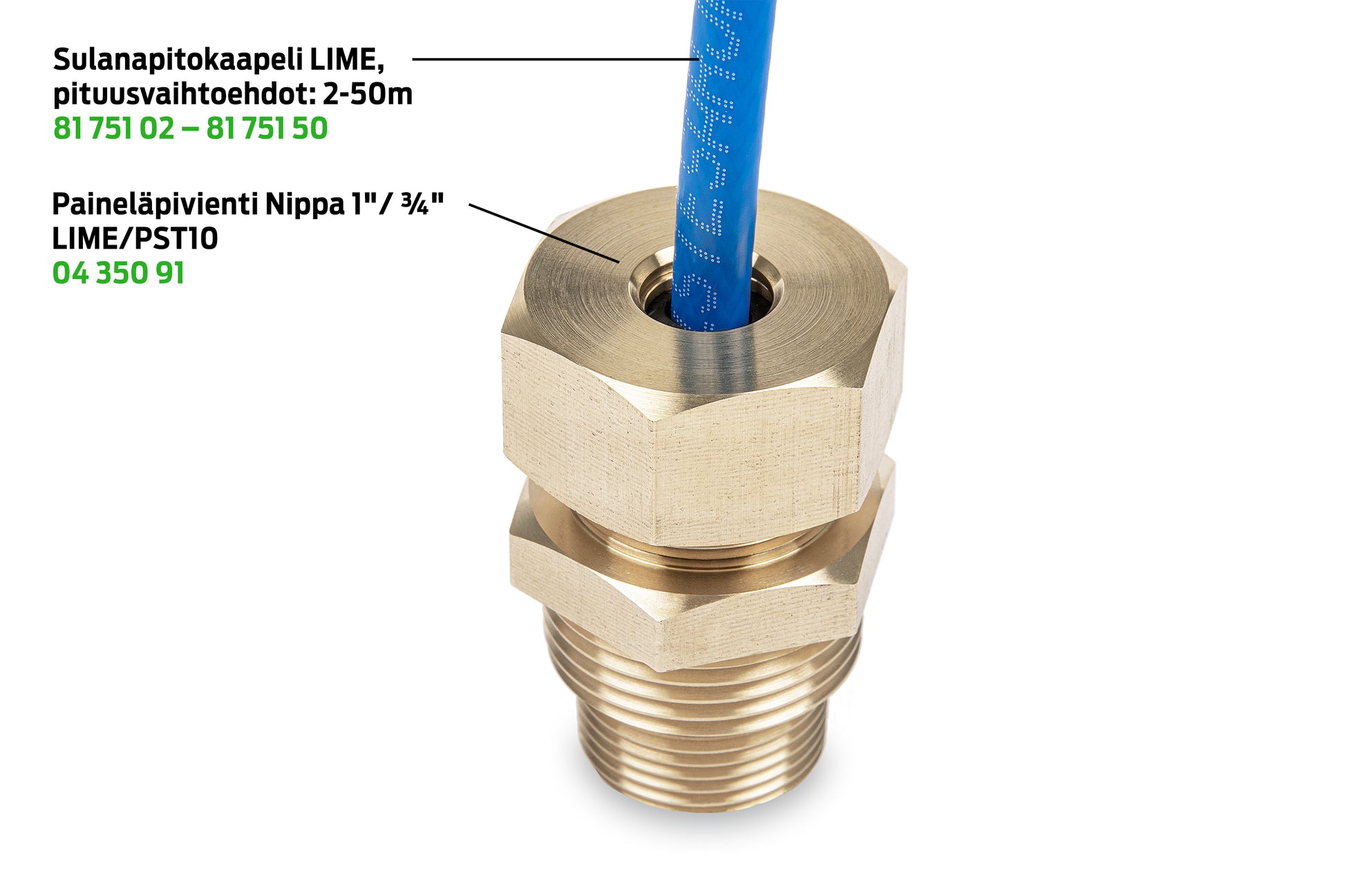 - Soveltuvuus: LIME ja PST10 / PSTL 10 -sulanapitokaapelille