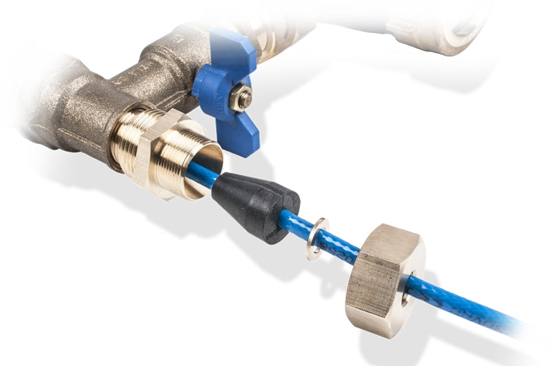 Paineläpivientinippa itsesäätyvien PST LIME, PST 10 ja PSTL 10 -sulanapitokaapeleiden läpivientiin vesimittariventtiileihin yms.