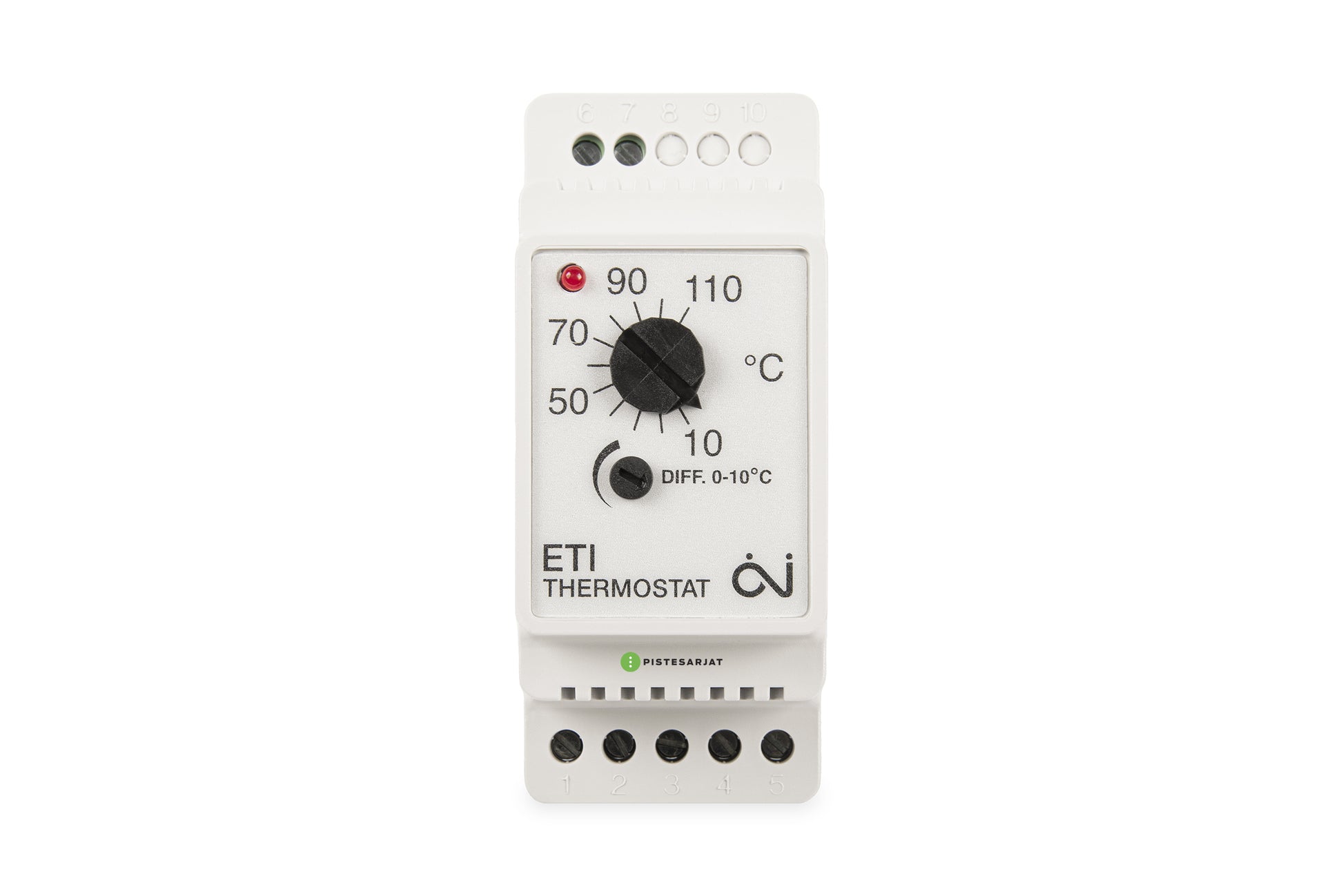 ETI-1221 -termostaattia käytetään sähkölämmityksen tai sulanapidon ohjaukseen. Termostaatti on DIN-kisko asenteinen, joten se on helppo sekä nopea asentaa keskukseen tai erilliseen asennuskoteloon.