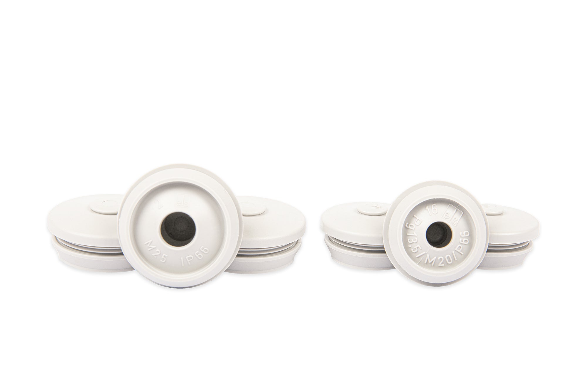 - Pakkauksen sisältö: 3 x M25 ja 3 x M20 kaksoiskalvoläpiviennit (IP65)