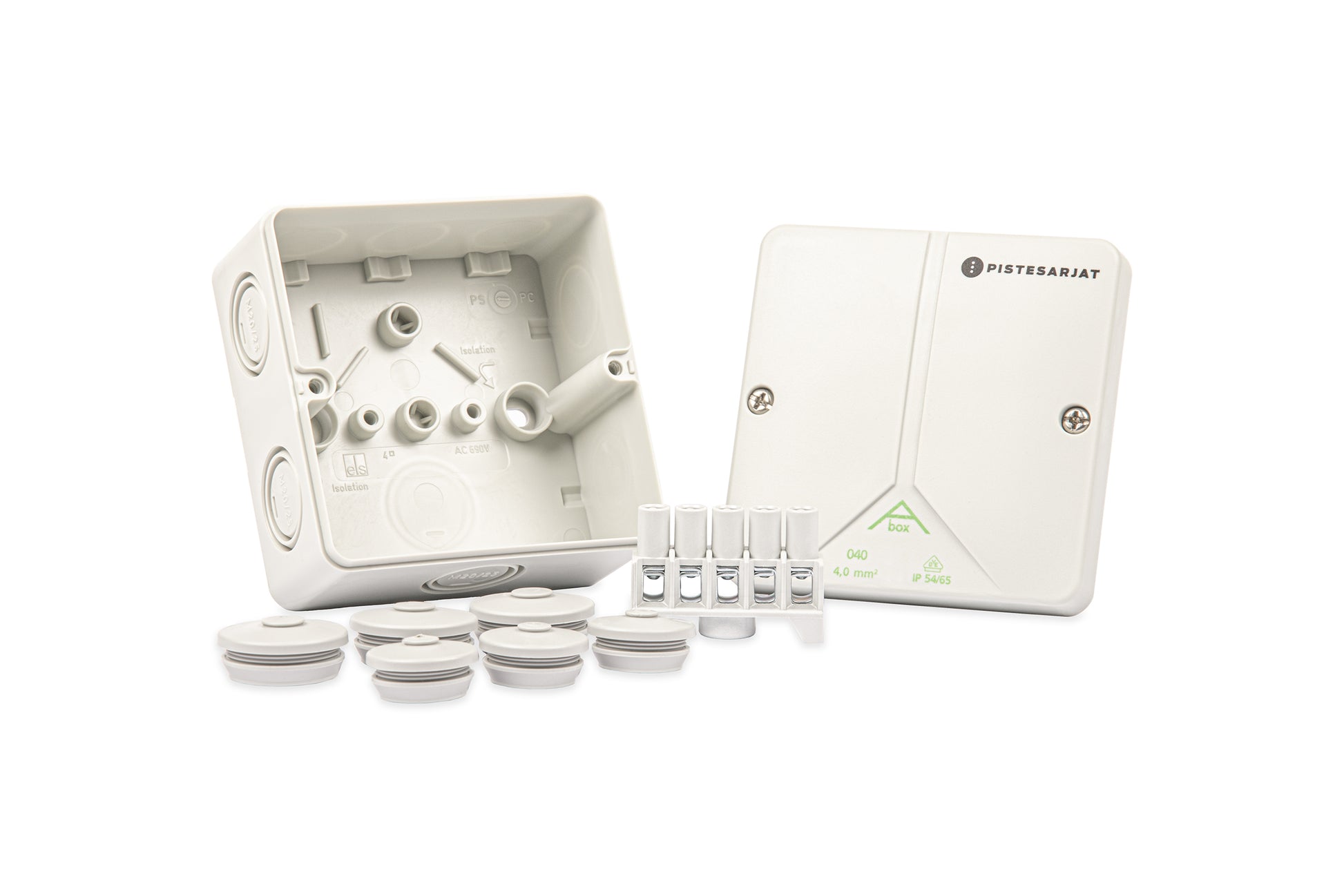 Kytkentärasia JB-K-1 M20/25 PST soveltuu lämpökaapeleiden syöttö- tai jakorasiaksi erityisesti sulanapitokohteissa. Mukana tulee kaksoiskalvotiivisteet (3xM20 ja 3xM25).