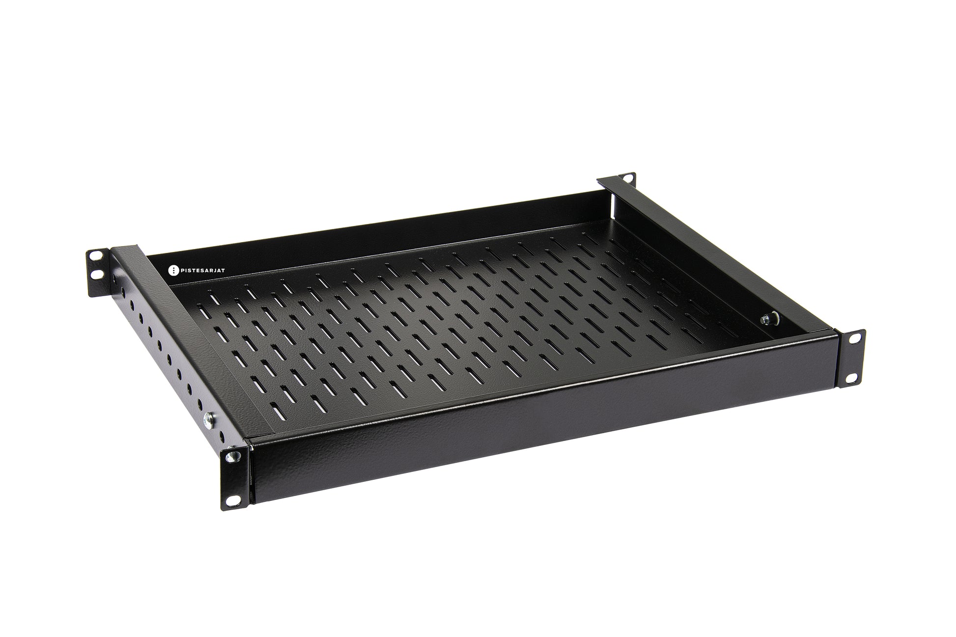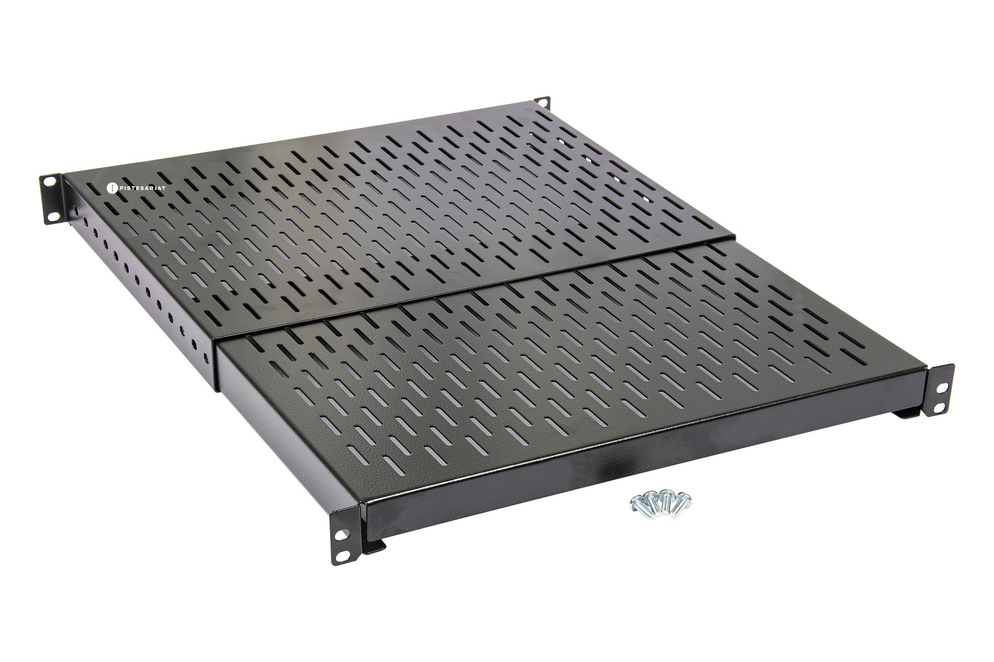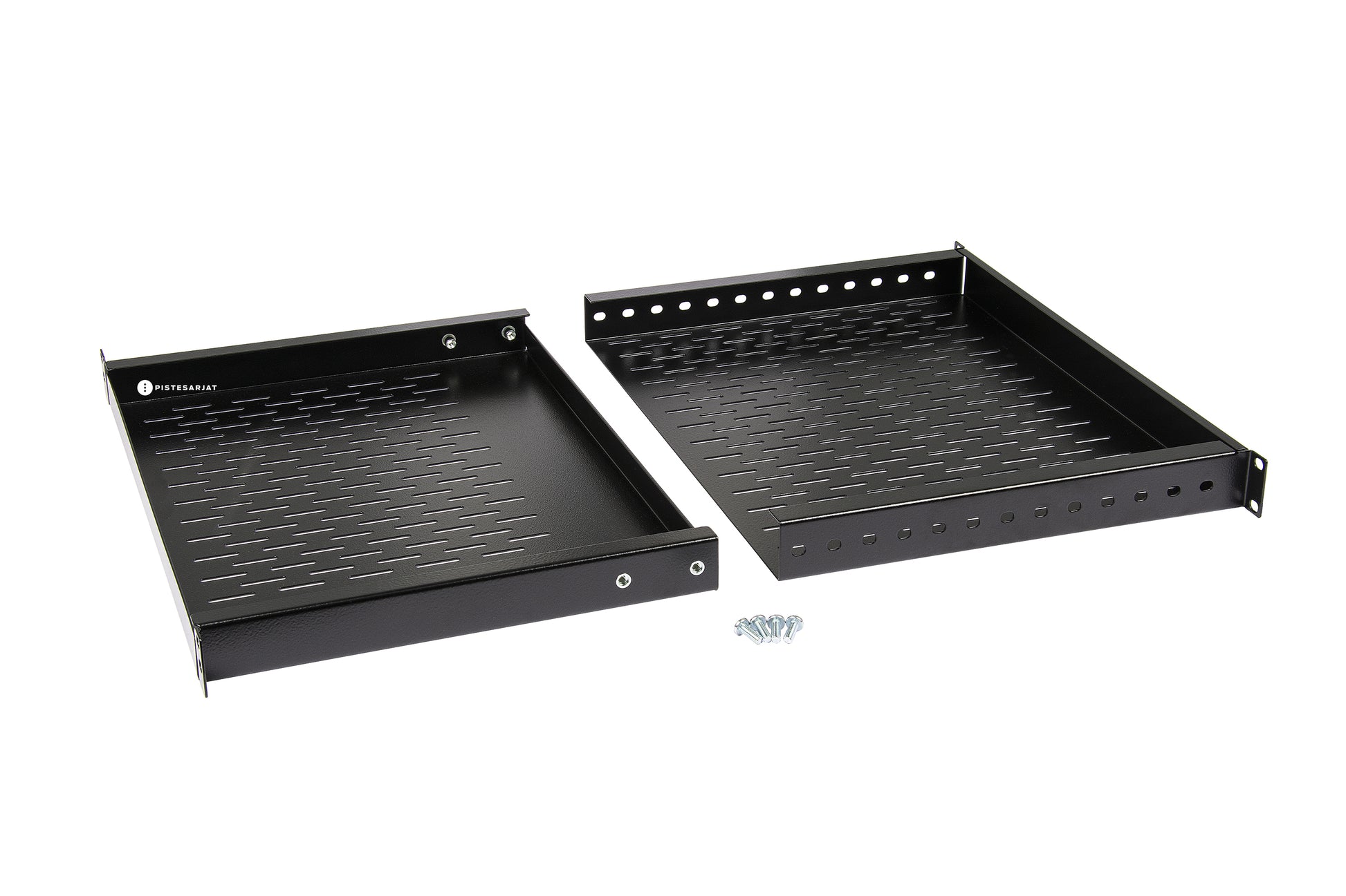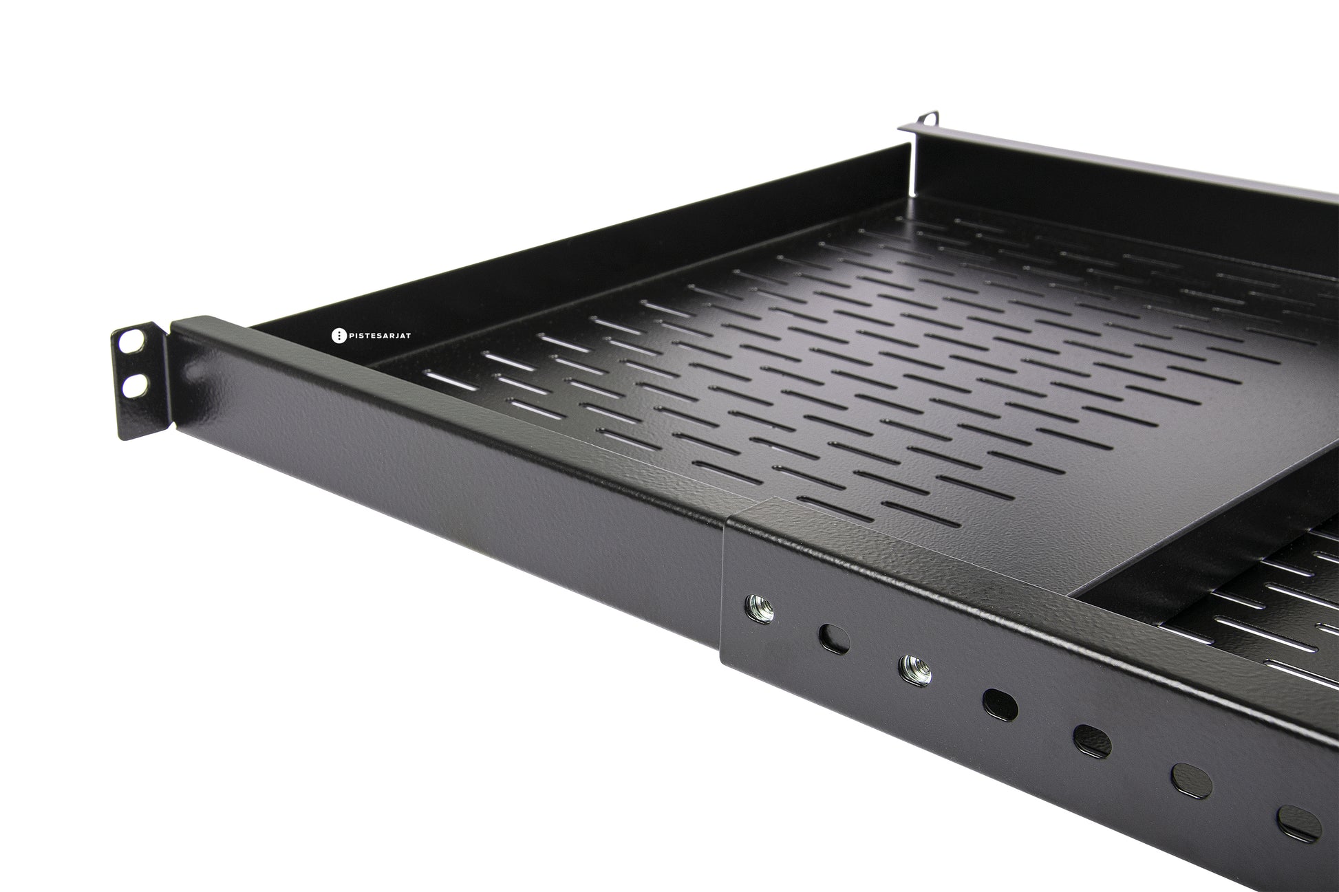 Hylly, musta 350-600mm, nelipiste 1U Säädettävä hylly 350-600mm,150kg