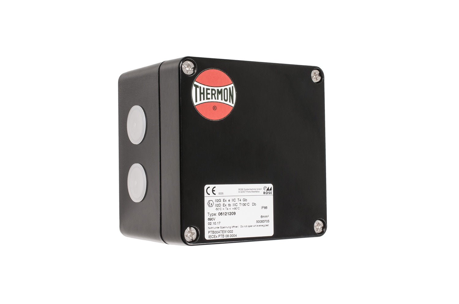 Kytkentärasia esimerkiksi räjähdysvaarallisiin (ATEX) tiloihin. Thermon JB-K-0 4xM25-Ex soveltuu BSX/RSX/KSX/TSX/HTSX/VSX ja HPT lämpökaapeleiden syöttö- tai jakorasiaksi.