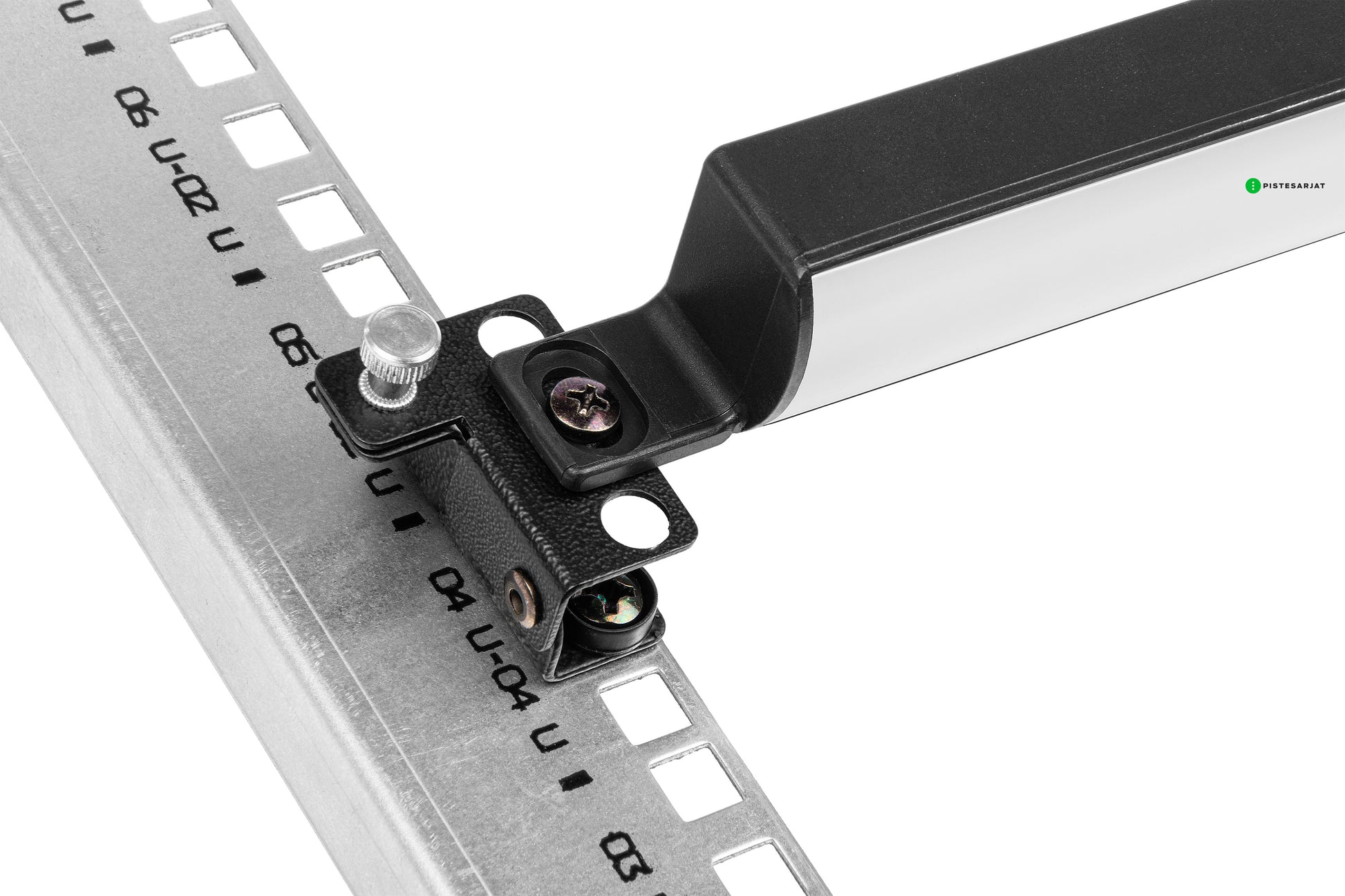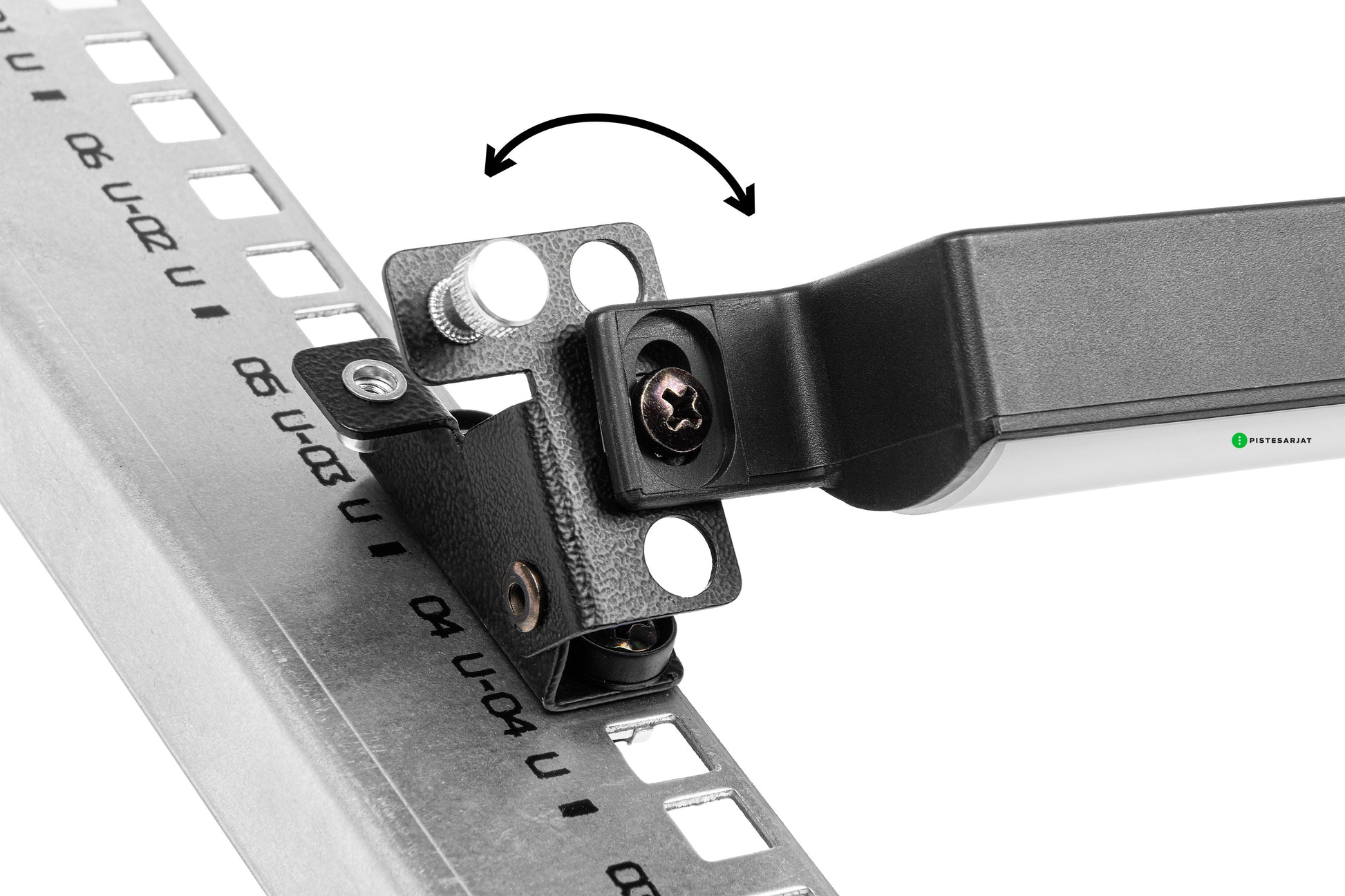 19” 1U automaattisesti päälle kytkeytyvä laitekaappien led-valaisin. Kääntyvän rakenne mahdollistaa valaistussuunnan säätämisen ylös- tai alaspäin. Led-valaisin kytkeytyy automaattisesti päälle kun kaapin ovi avataan. Valaisin sammuu kun ovi suljetaan tai valaisin ei havaitse liikettä 60 sekunnin aikana.
