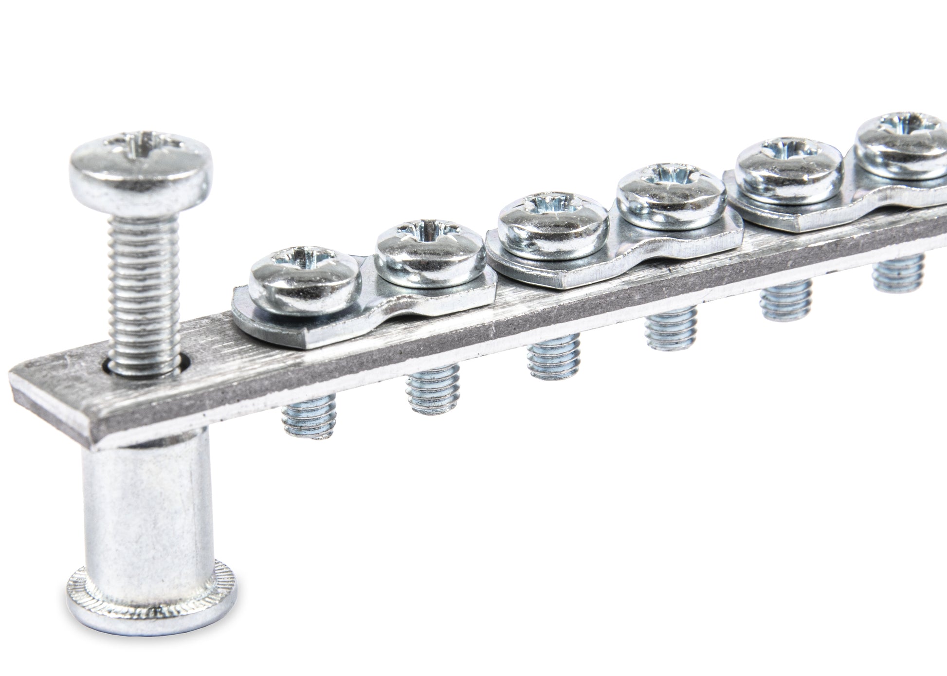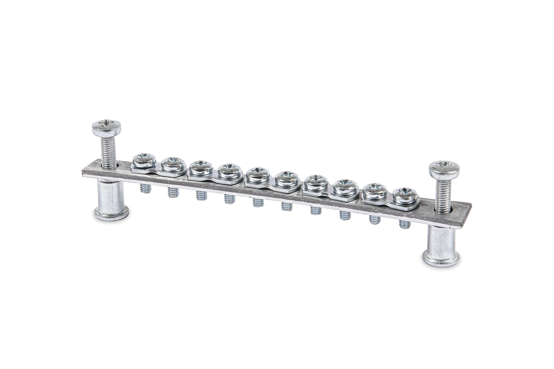 Maadoituskisko avo- tai umpikaappeihin. 5 paikkaa 1,5 - 16 mm2 kaapeleille. Sisältää kiinnityssarjan.