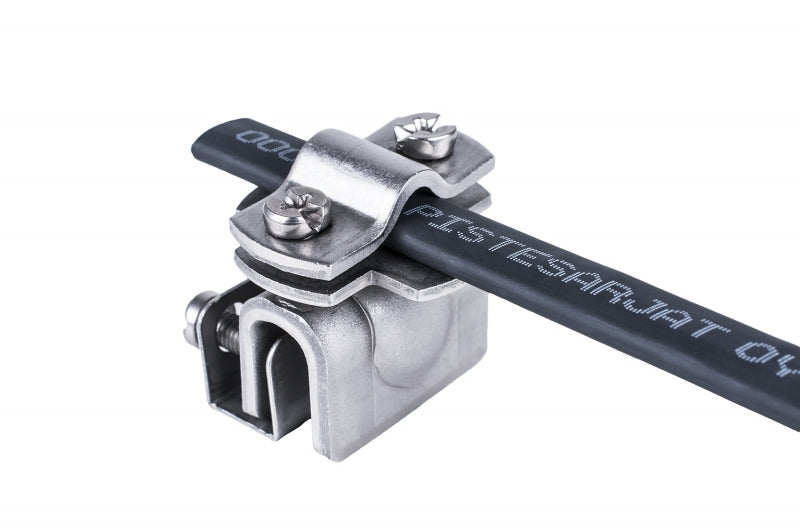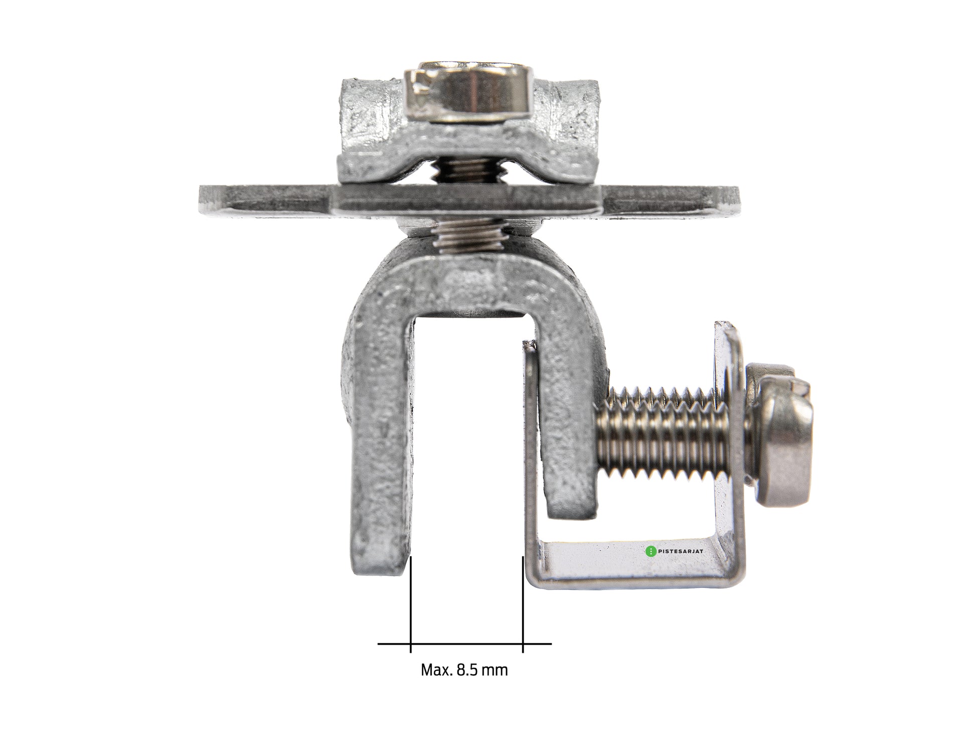 Tukevat kiinnitysruuvit ja katon pintamateriaalia suojaava rakenne, joka estää ruuvien porautumisen katon pintamaalin/sinkityksen läpi. Kiinnikeen yläosassa oleva kaapelikiinnitys on käännettävissä 90°, jolloin kiinniketta voidaan käyttää pitkittäis- ja poikittaisvedoissa. Soveltuu pyöreälle sekä litteälle kaapelille.