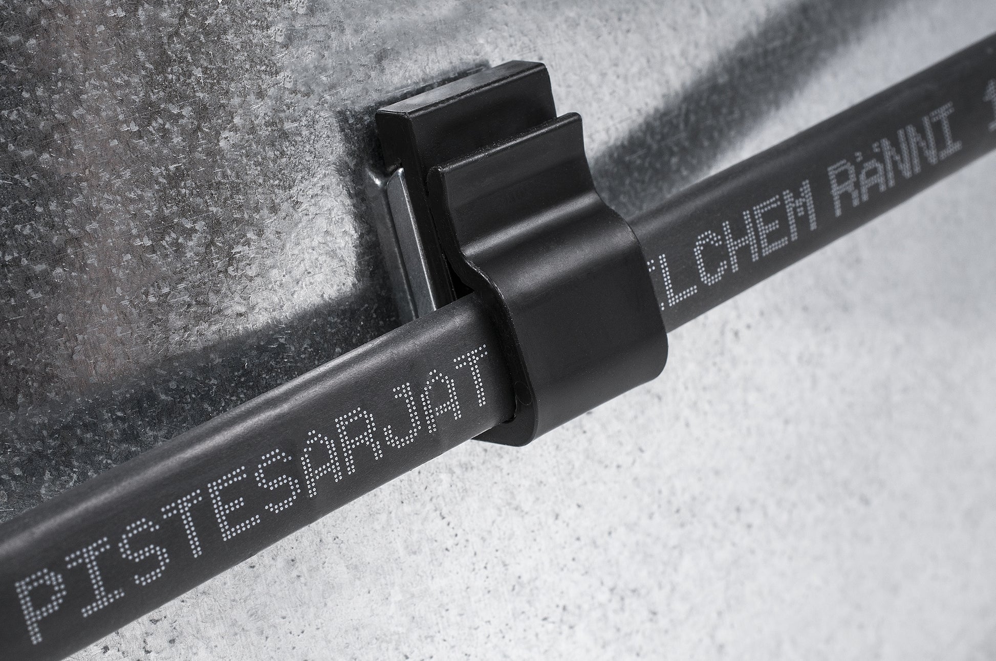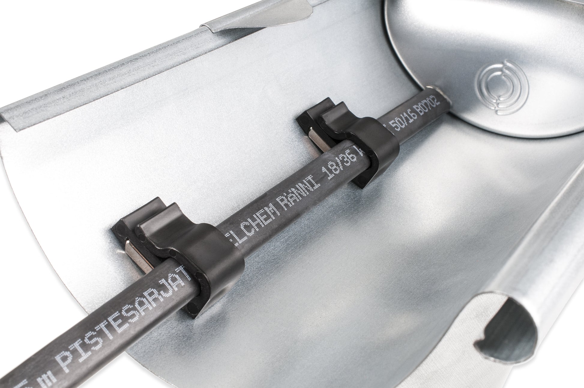 ÄSSÄ® -kaapelikiinnike on erittäin helppo ja nopea asentaa kaikkiin metallisiin pintoihin. Soveltuu erinomaisesti sulanapito- ja saattolämmityskaapeleiden kiinnitykseen katoille, räystäisiin, syöksyihin ja muihin metallipinnoille. Magneetin avulla kiinnike voidaan asentaa kourun etu-tai takareunaan irti kourun tai jalkarännin pohjasta, jolloin kouru pysyy paremmin puhtaana lehdistä ja muista roskista.