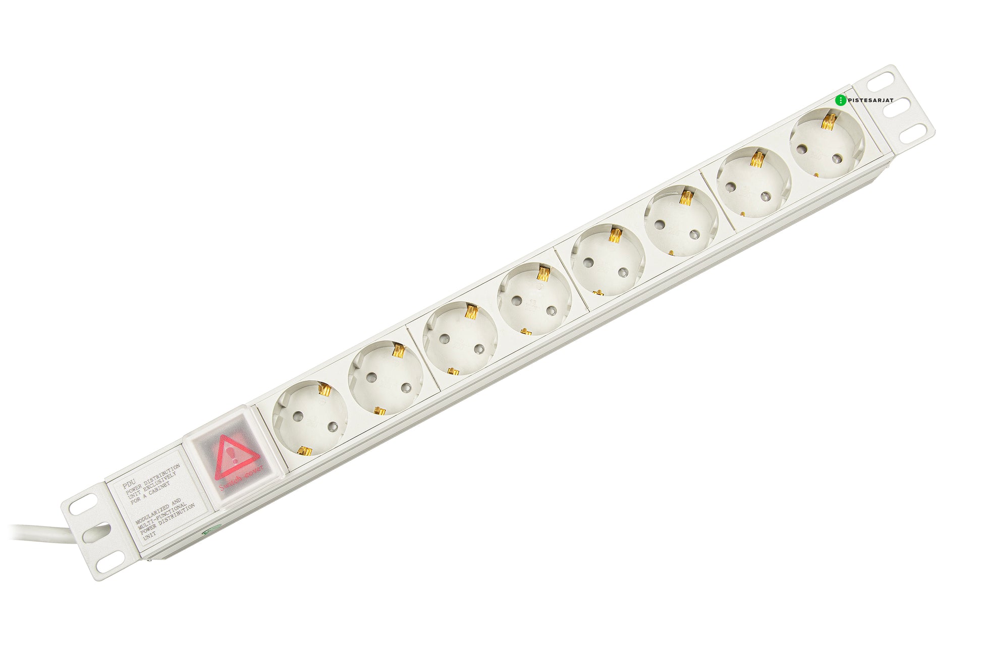 Pistorasiapaneeli 19" 8-os kytkimellä Pistorasiapaneeli harmaa 2m