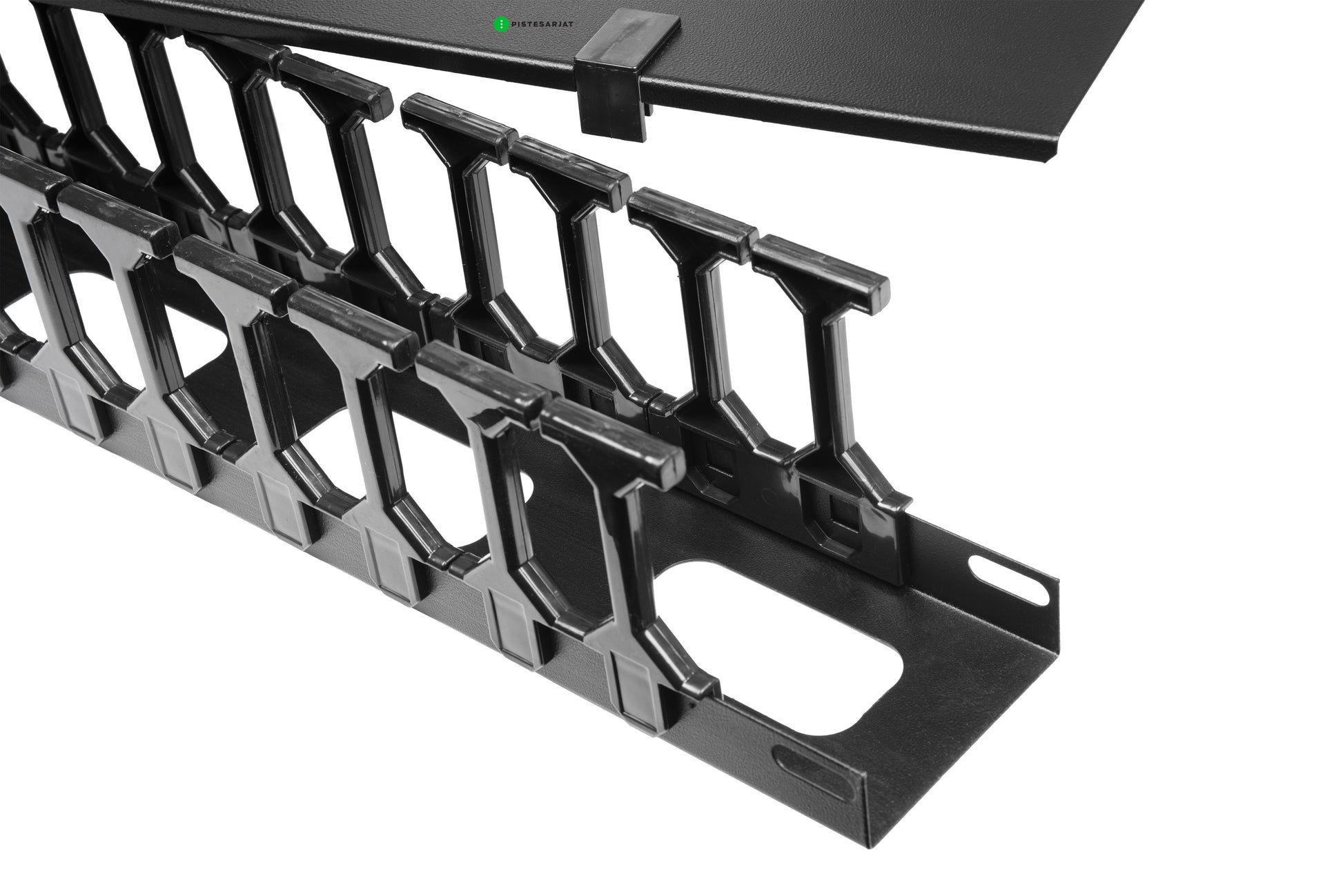 Pystysuuntaiset kaapeliohjurit on tarkoitettu kaapeleiden selkeään viemiseen kaappien sisällä. Pakkauksessa 2 pystyohjuria. Pystyohjurissa mahdollisimman isot aukot helppoon kaapelinhallintaan ja kytkentäkaapeleiden liittimet menee helposti ohjurin aukoista läpi. Helposti irroitettavat kansilevyt helpottaa johtojen asentamista kouruun. Suunniteltu kaikenlaisten kytkentäjohtojen, verkkokaapelien ja sähkökaapelien asentamiseen kaappien sisällä. Asennus 19” kiinnityskiskoihin.